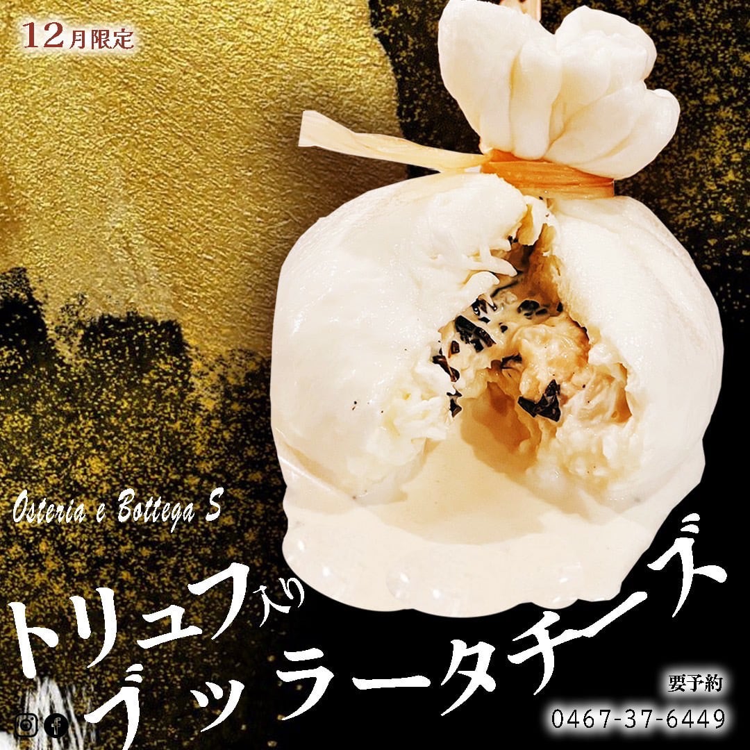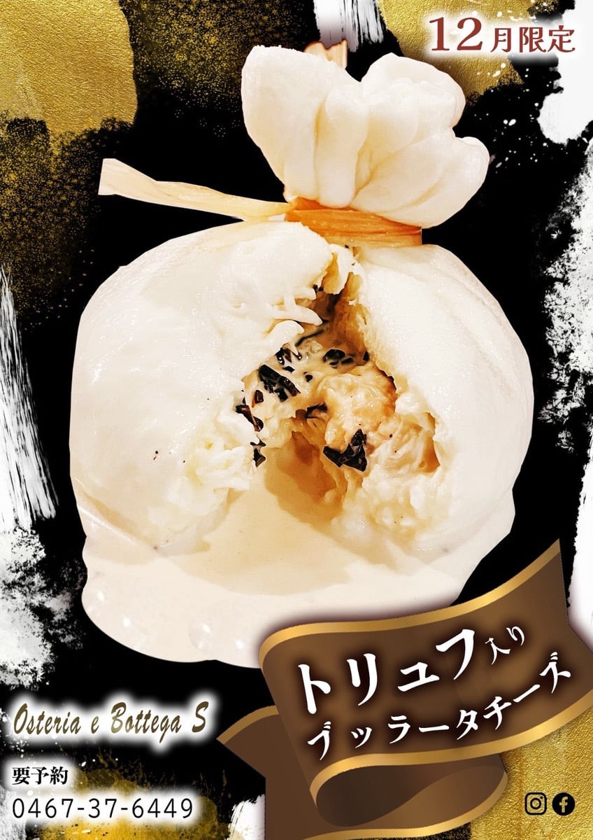 トリュフを繊維状に裂いたチーズと一緒に中に入れたブッラータチーズです!イベントやプレゼントにいかがてますか。