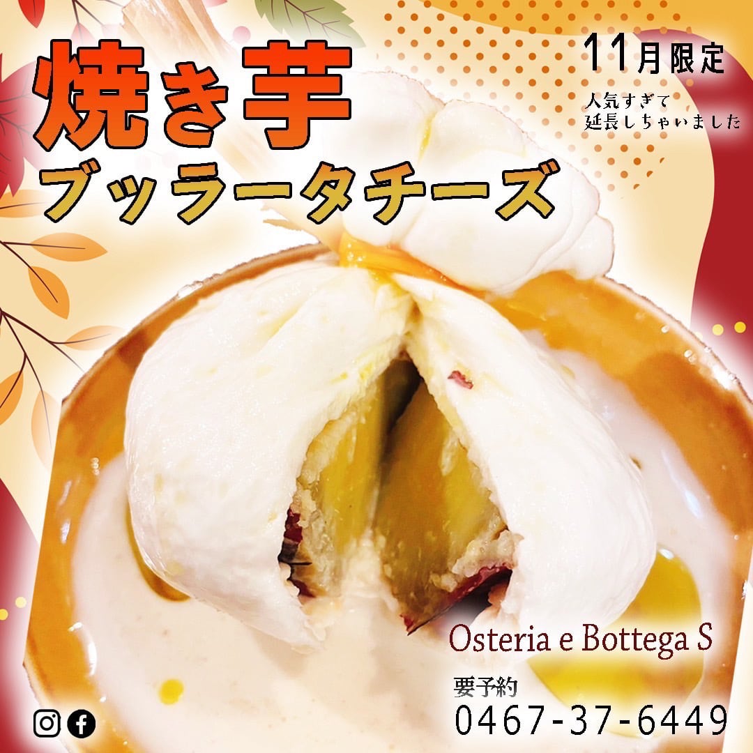 新しい秋の味覚をお届けします!この度、10月限定で登場するのは、焼き芋を使った特別なブッラータチーズです。日本の秋を感じる甘みとクリーミーなチーズのコラボレーションが楽しめる逸品です。